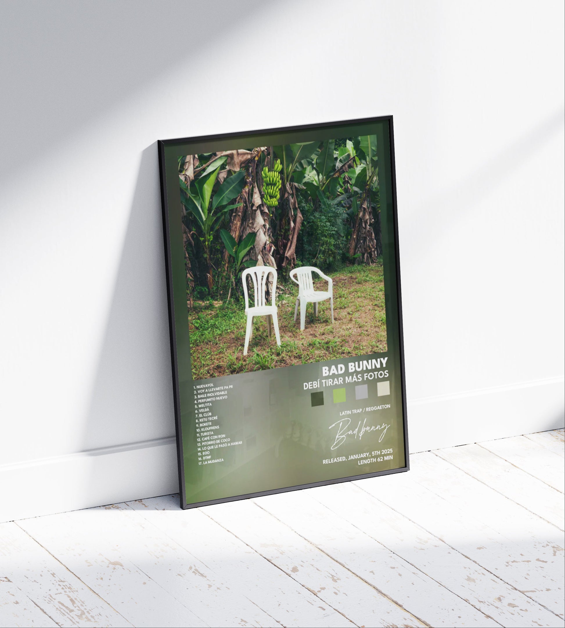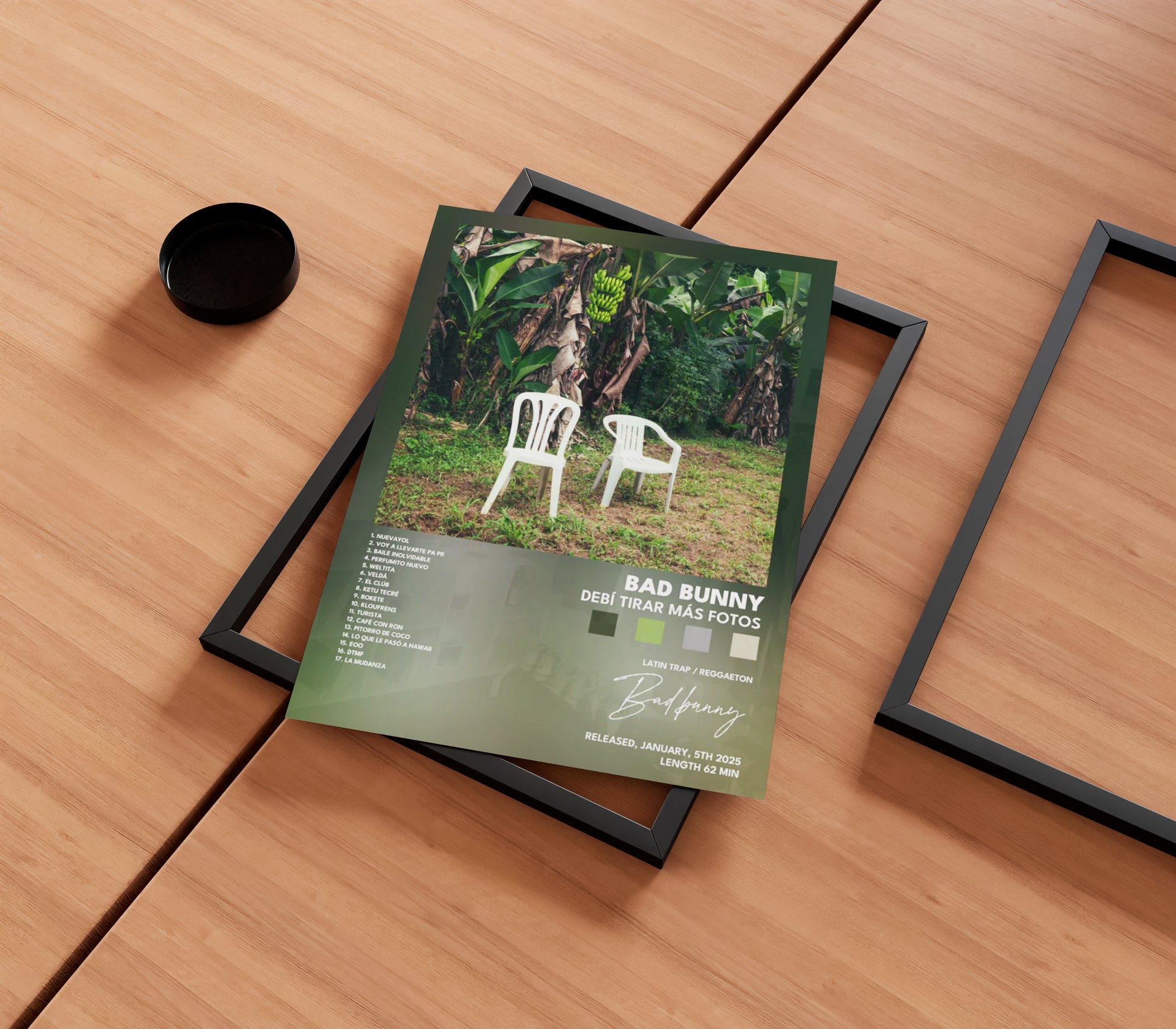 Celebrate one of reggaeton's most iconic albums with this striking Bad Bunny 'Debí Tirar Más Fotos' poster. Featuring bold, eye-catching artwork that captures the essence of this landmark 2022 release, it's an essential addition for dedicated fans and music collectors. High-quality print ensures vibrant colours and sharp detail that endure. Perfect for bedrooms, studios, or any space where contemporary music culture matters. Display your appreciation for Bad Bunny's artistry with a poster that commands attention.