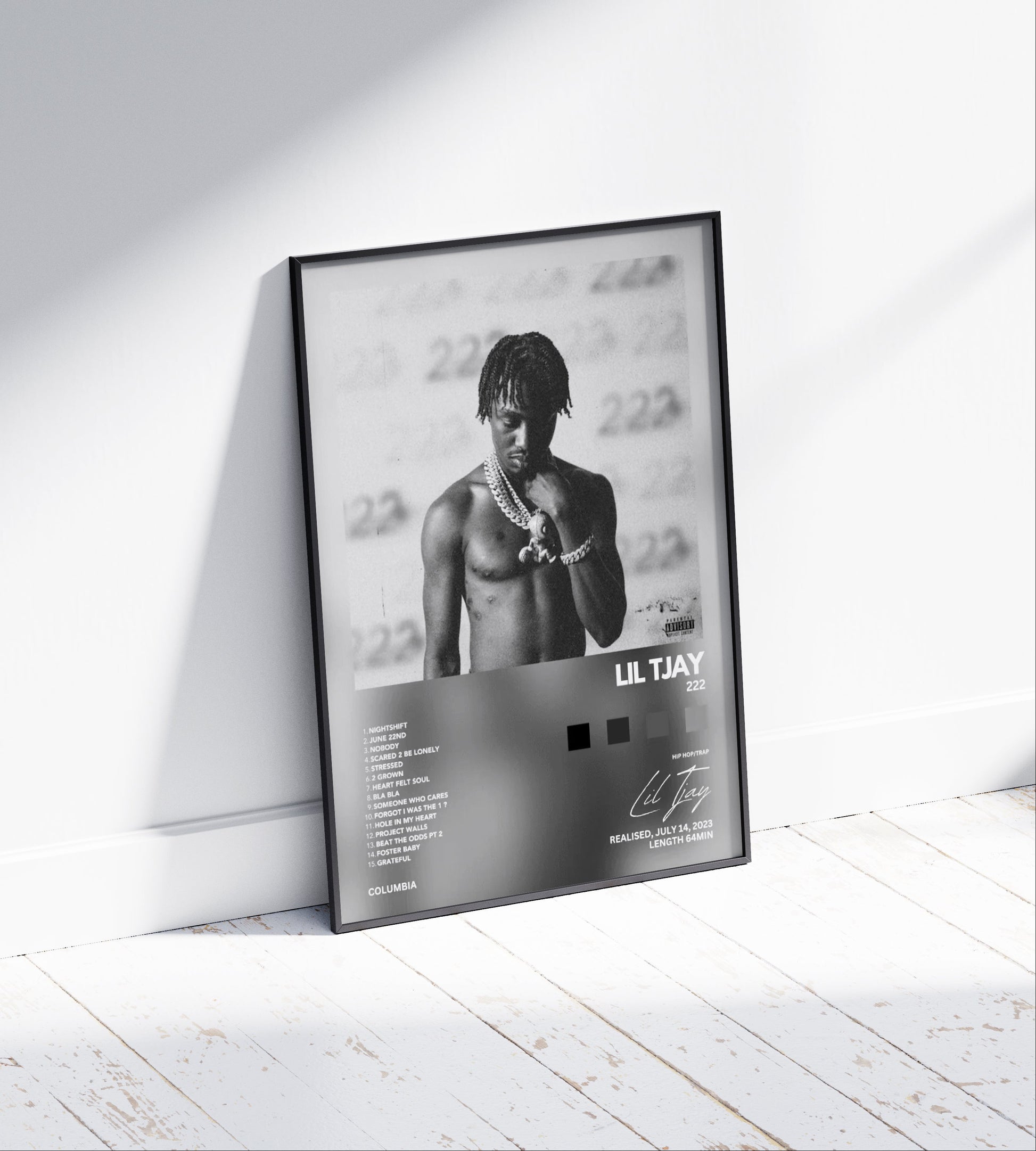 Celebrate the release of Lil Tjay's '222' album with this striking poster. Featuring bold artwork that captures the essence of the project, this print brings contemporary hip-hop culture into your space. Perfect for fans of the artist and collectors of rap memorabilia, it's an ideal addition to bedroom walls, studios, or entertainment areas. High-quality printing ensures vibrant colours and lasting clarity. Display your appreciation for modern rap artistry with this essential piece.
