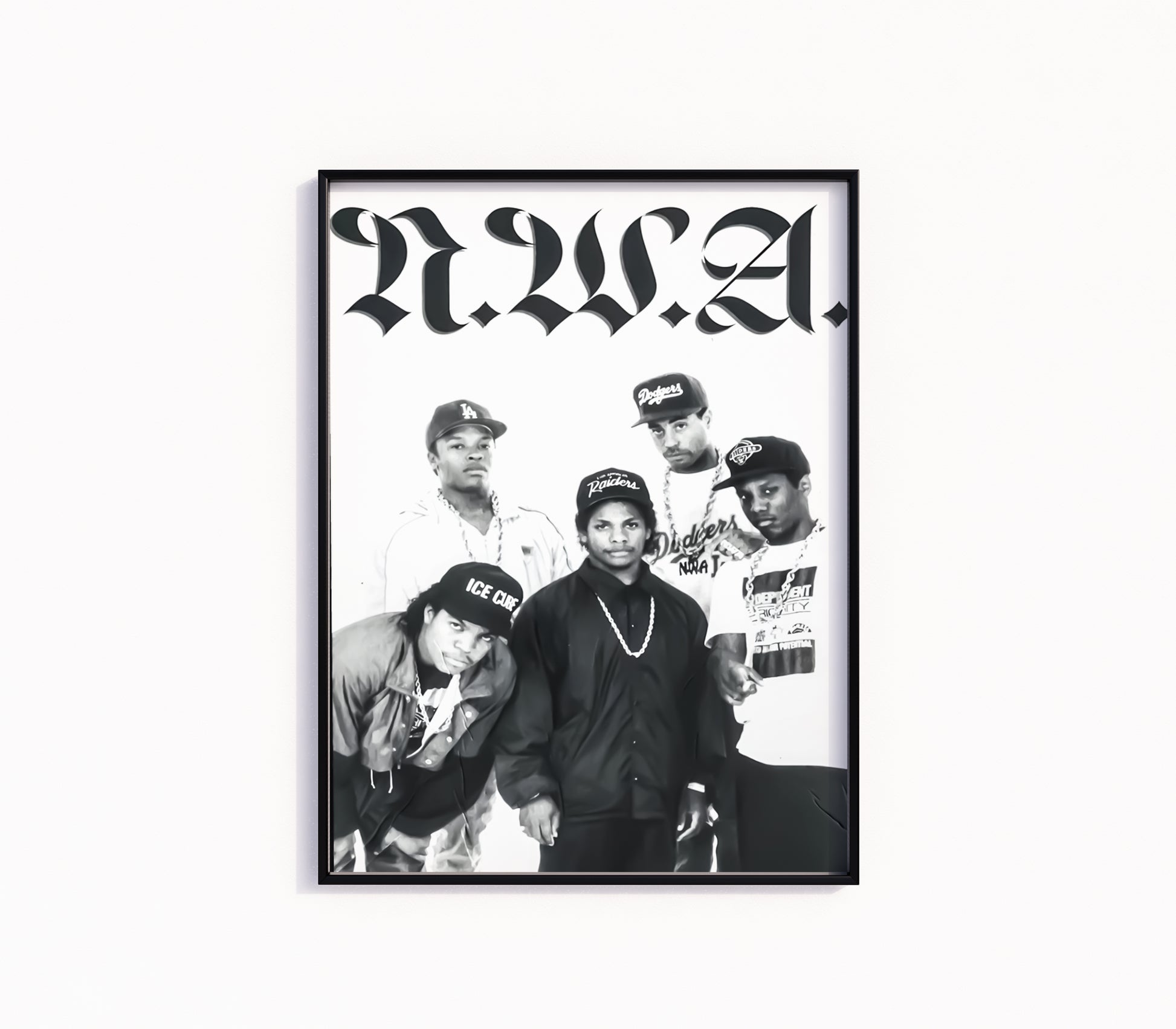 Highlight the iconic album cover of NWA's debut album with the NWA Poster. Featuring the faces of Ice Cube, Eazy-E, MC Ren, and Dr. Dre, this poster makes the perfect addition to any music lover's collection. Display it proudly to pay tribute to the influential and groundbreaking rap group.
