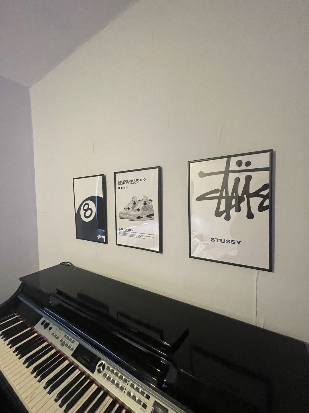 The Stussy and Jordan posters above the piano give it such a cool vibe. Really happy with how they turned out!